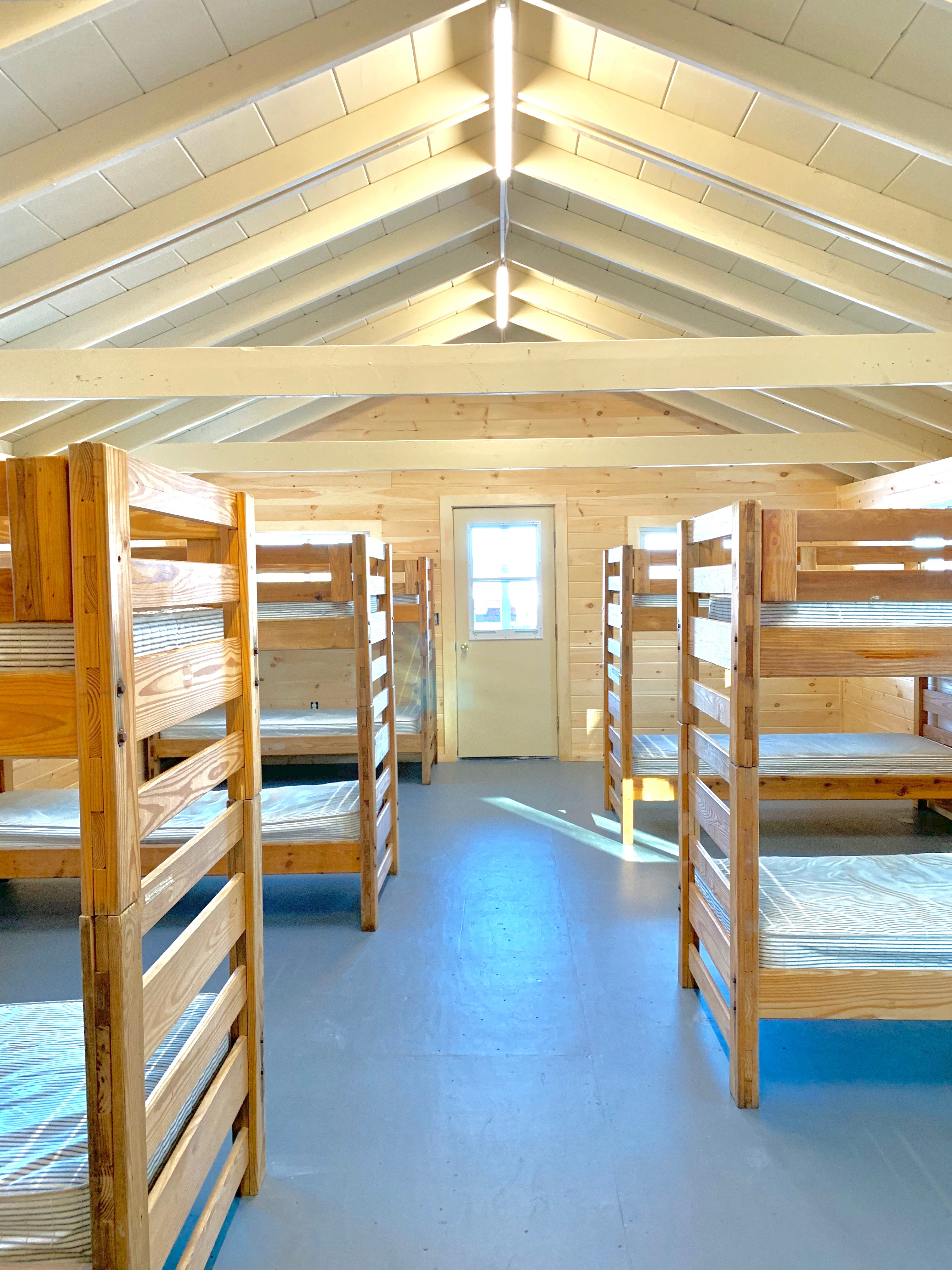 Bunks have 6-10 boys and at least three counselors. All bunks are completely remodeled! Each camper has cubbies for their clothes and personal belongings. Bathrooms are located inside the cabins.